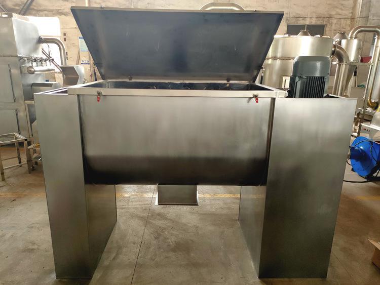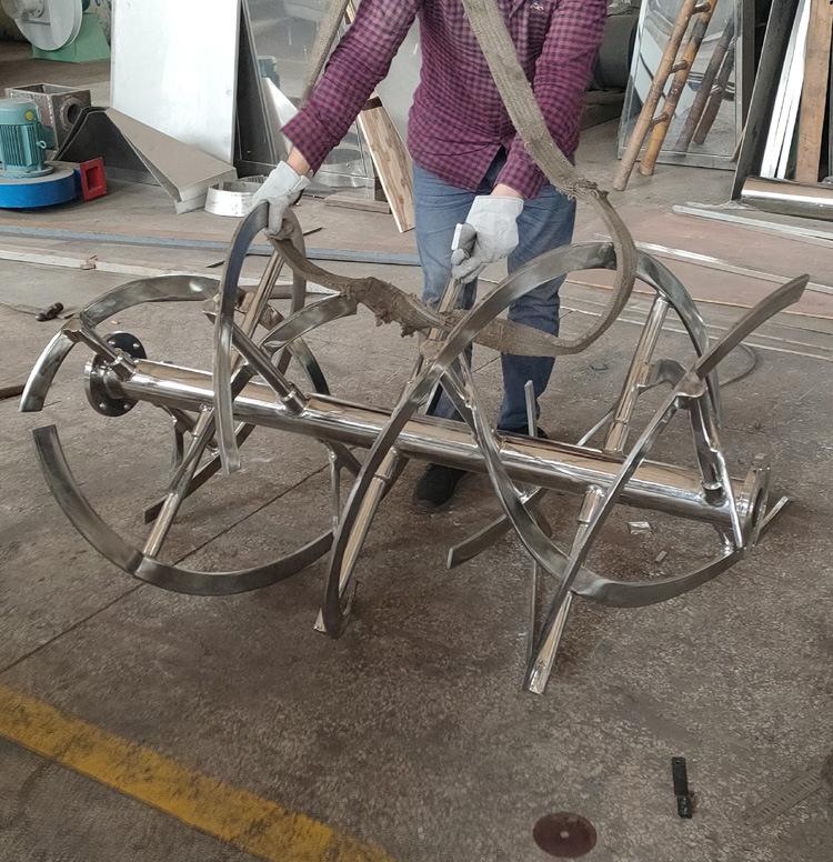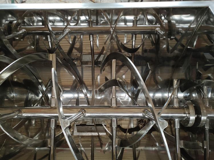 二、特點: 螺帶混合機由混合槽、螺旋攪拌葉片和傳動部件等組合而成,螺旋葉片一般做成二層,外層螺旋將物料從兩側向中央匯集,內層螺旋將物料從中央向兩側分流,使物料在混合槽內形成對流混合。混合均勻度高:能使1:10000倍配比的物料均勻混合,尤其使對于比重特性較大的物料混合更顯其優勢。混合速度快,效率高。比其它混料機效率提高6-10倍或更高。出料快,方便,通常2~5分鐘出完一批料。混合過程溫和,基本不被破壞物料的原始狀態。對物料無污染現象,該設備的攪拌機構為整體式,安全可靠,所有棱角焊縫圓滑過渡,易清洗;潤滑部部位均在桶體外,無滴油和磨屑物滲入物料,可密封操作,隔絕空氣中塵埃進入物料。能耗小,裝載系數大。對廠房要求低,設備為臥式,且各種形式的驅動裝置和出料位置可任意選擇,不受廠房高度,占地面積制約。設備運轉平穩可靠,易損件少,使用壽命長,維修方便操作簡單。