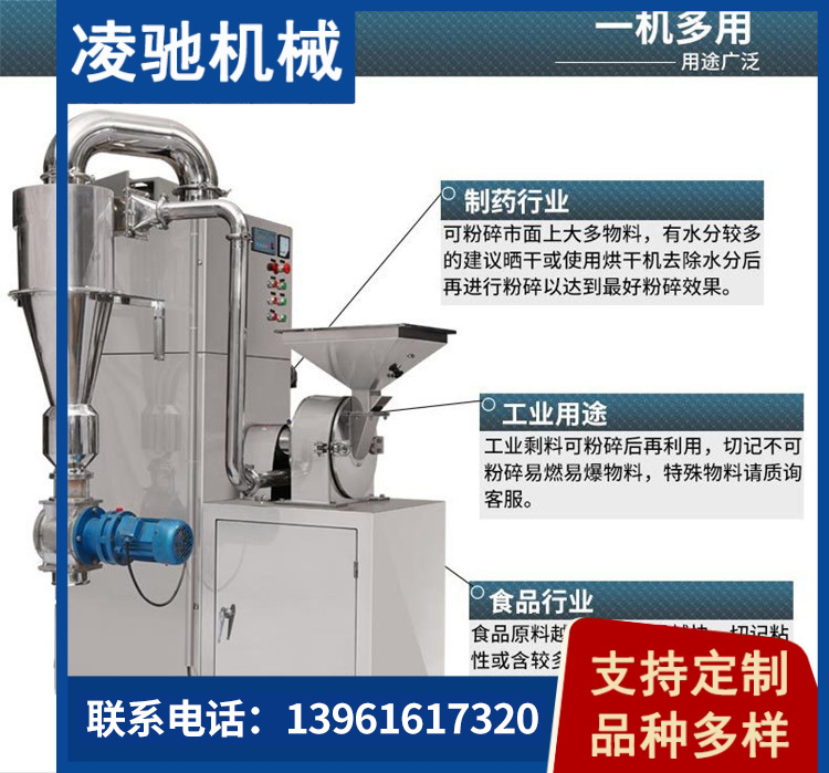 5、中草藥粉碎機主機采用水冷卻,中草藥粉碎機采用SUS304不銹鋼材料制作。