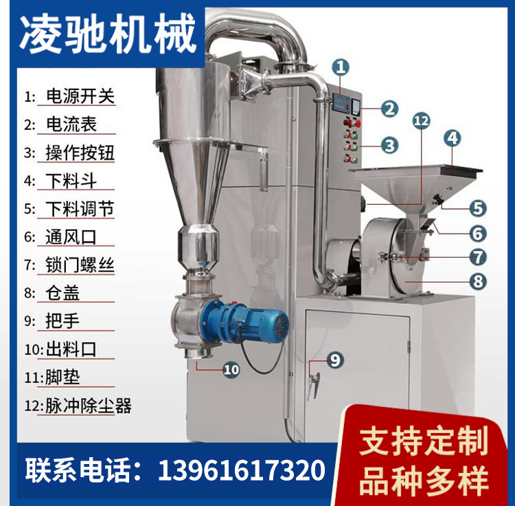 1、結構:中草藥粉碎機主要有(機殼、機門、渦輪、主軸、篩網)、旋風分離器、皮帶輪、電動機、除塵箱、下料器、空氣過濾器及引風機等零部件組成。
