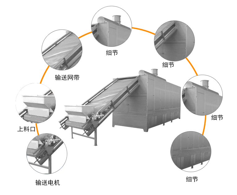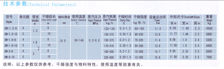 ??在實際使用過程中我們認識到以一種設計方式解決多種不同性質物料的干燥是不合理的,因此,DWT系列設備在定型產品的基礎上同時強調其專用性,基本類型有脫水蔬菜專機、米飯專機、中藥飲片專機、顏料染料專機、洗棉及水洗毛專機.炒貨食品專機、塑料顆粒干燥與熱處理專機、還有磁粉、氧化鐵黃、輕質碳酸鈣、白碳黑干燥專機等等。客戶在設備選型時應根據物料特性與我廠設計人員協商決定根據物料干燥的特殊要求確定風量、溫度、相對濕度、運轉速度等技術參數以保證設備的適用性、可靠性達到較好的運行性能。